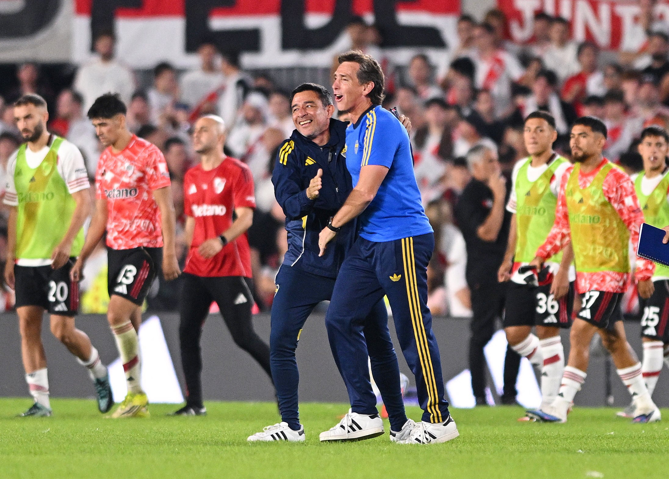 Luego subrayó que la importancia de la victoria cobró un significado especial en un Superclásico disputado en el estadio Monumental: “Muchísima, muchísima. Todos sabemos lo que significa el fútbol argentino y la incidencia que tienen este tipo de partidos a nivel mundial. Nos pone contentos a nosotros poder haber logrado en las dos veces que los enfrentamos resultados positivos. Creo que este en particular, estratégicamente, el equipo hizo un partido muy ordenado, muy inteligente, sabiendo manejar los tiempos del partido en función de cómo estaba la situación. No sufrimos de una manera que vos digas que nos metieron en un arco, porque la verdad, las situaciones reales de juego cercanas a Brey, no fueron muchas, fueron muy poquitas”.