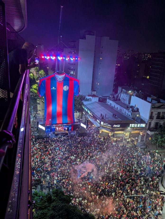 La convocatoria fue masiva y cortó el tránsito en la intersección más emblemática de Boedo, donde una grúa desplegó la réplica gigante del manto sagrado. El acto, organizado por la empresa Atomik, incluyó la presencia de una banda de tango en vivo y la participación activa de los planteles masculino y femenino, con futbolistas como Ezequiel Cerutti, Gastón Hernández, Alexis Cuello y Nicolás Tripichio. Entre los presentes estuvieron también el entrenador Damián Ayude y glorias azulgranas como Esteban González. El presidente transitorio, Sergio Constantino, acompañó la jornada.