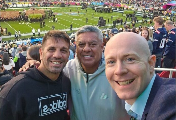Claudio Chiqui Tapia, Andrés Patón Urich y Mattias Grafstrom, en la final del Super Bowl 2026 (Instagram)