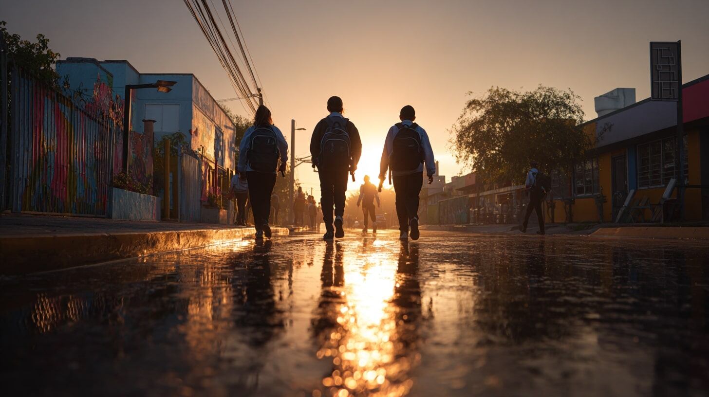 Niños caminando hacia el colegio, una actividad cotidiana que fomenta el movimiento físico, la salud y el bienestar en la infancia - (Imagen Ilustrativa Infobae)