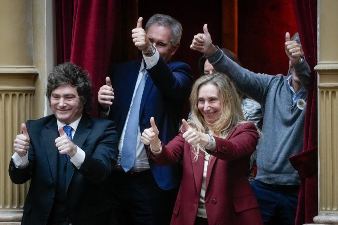 La figura del exvocero es importante para el oficialismo porque, además de ponerle rostro al Poder Ejecutivo, oficia de ordenador entre las tribus en pugna. No fue casual la confluencia del asesor presidencial, Santiago Caputo, y la secretaria general de la Presidencia, Karina Milei, en los palcos del recinto. Tampoco lo fue la presencia de la totalidad de los ministros, legisladores y colaboradores que quedó inmortalizada en una foto.