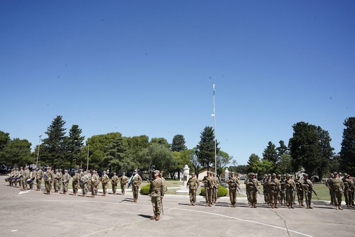 Una formación de soldados del Ejército Argentino en una presentacion de helicopteros Sea King en Puerto Belgrano (Crédito: Franco Fafasuli)