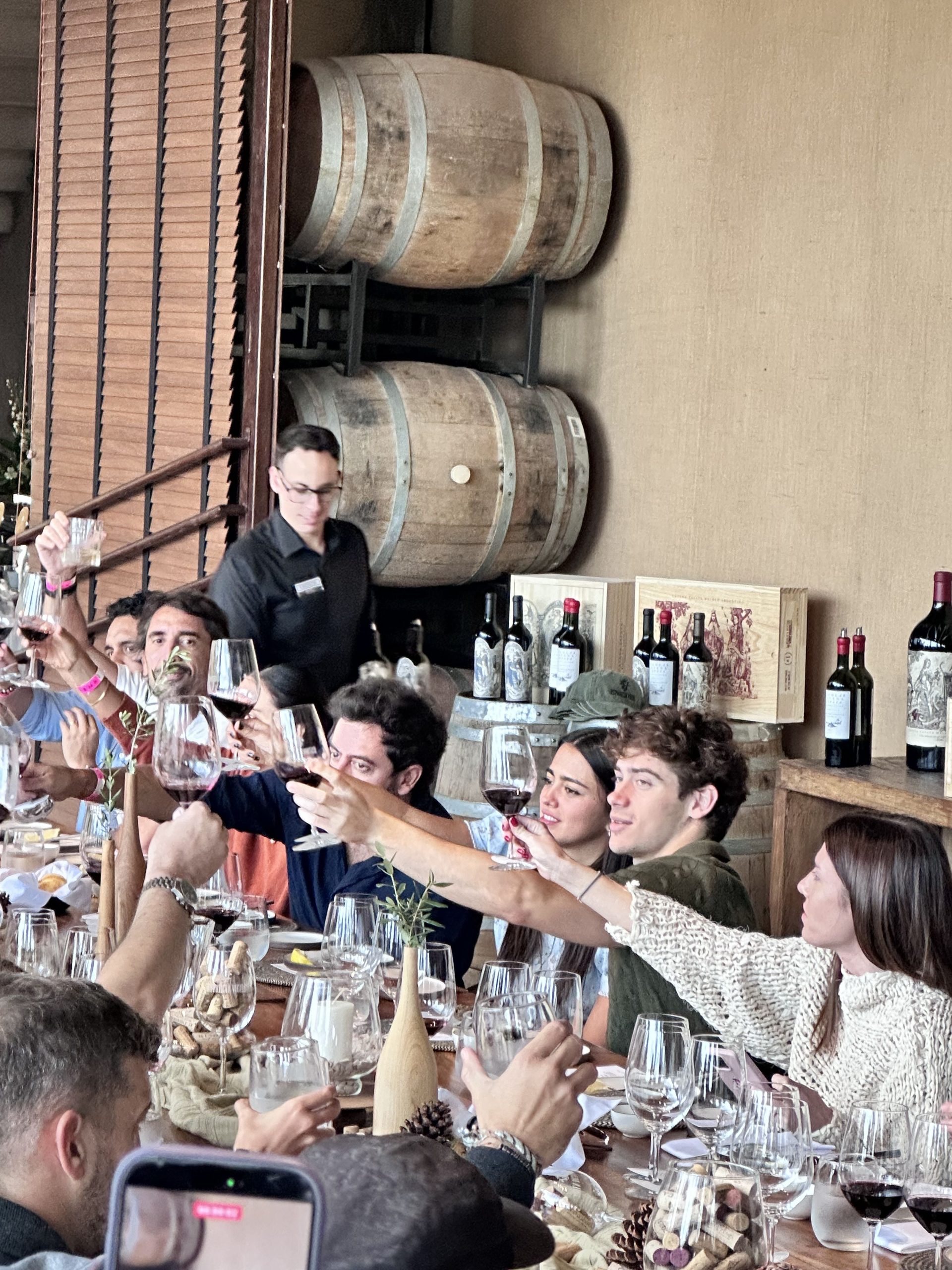 Durante la tarde, los invitados recorrieron los viñedos y la bodega de la estancia, donde Colapinto concedió una entrevista al equipo oficial de Fórmula 1. Antes del almuerzo, el piloto bonaerense se animó a participar en la preparación del asado junto al chef Diego Irato, aportando un ambiente relajado y festivo a la reunión.